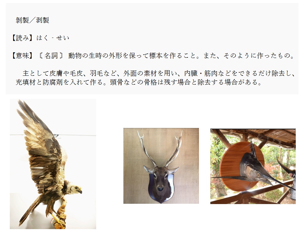 剝(剥)製 | 動物の生時の外形を保った標本 | 解説 |