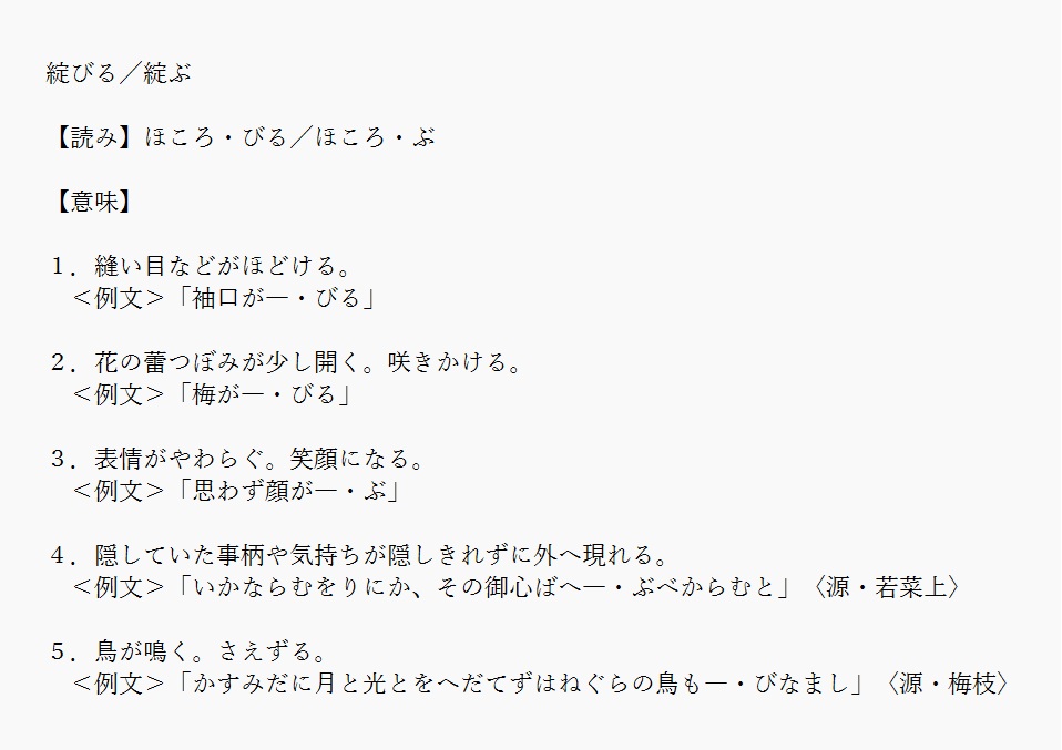 綻 | 表情がやわらぐ。笑顔になる | 解説 |