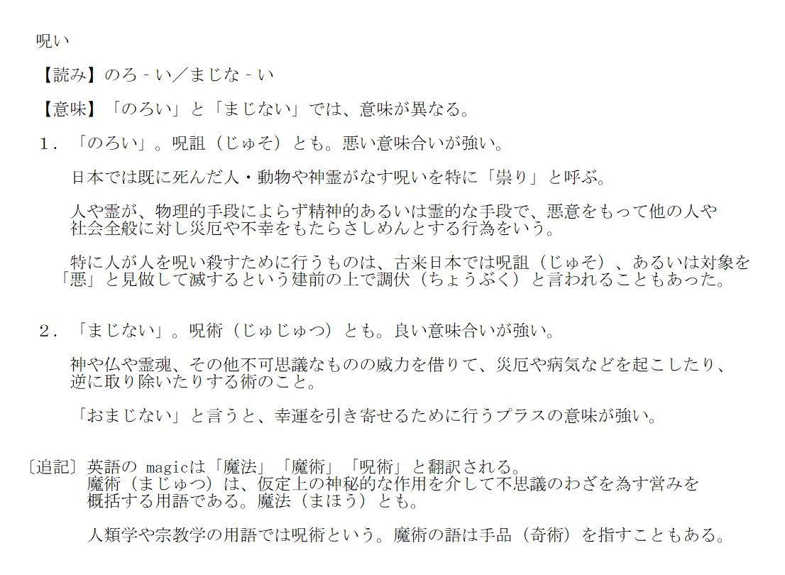 呪 | 神仏の力で災を取り除いたりする術 | 解説 |