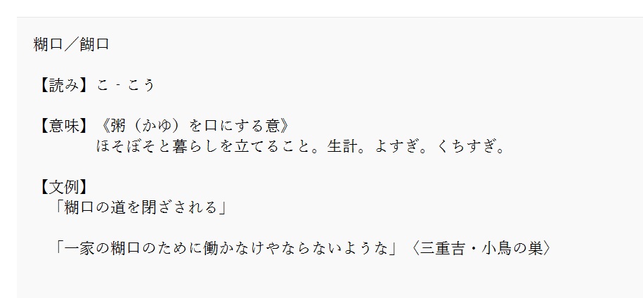 糊口/餬口 | 粥のような粗末な食事 | 解説 |
