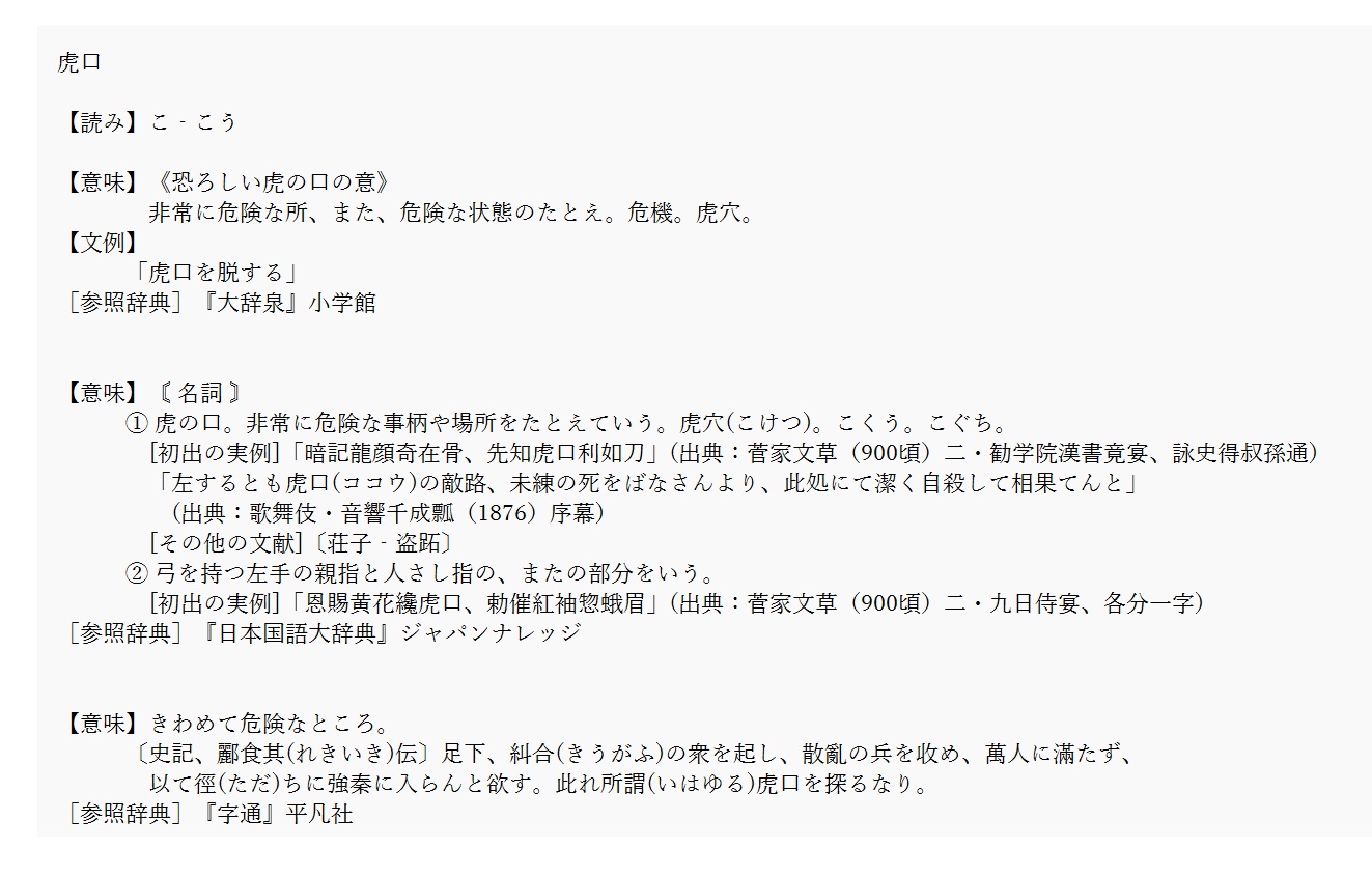 虎口 | 城の出入口のこと。小口とも書く | 解説 |