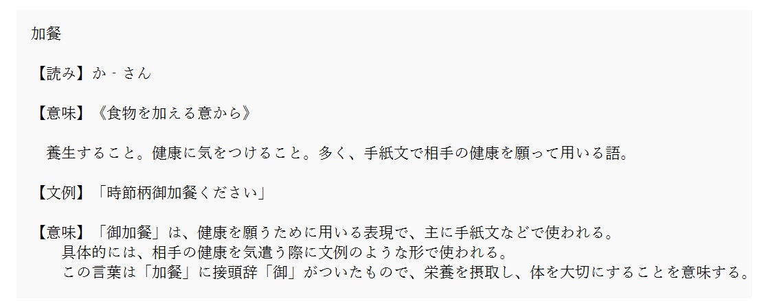 加餐 | 食を加える。転じて、養生すること | 解説 |