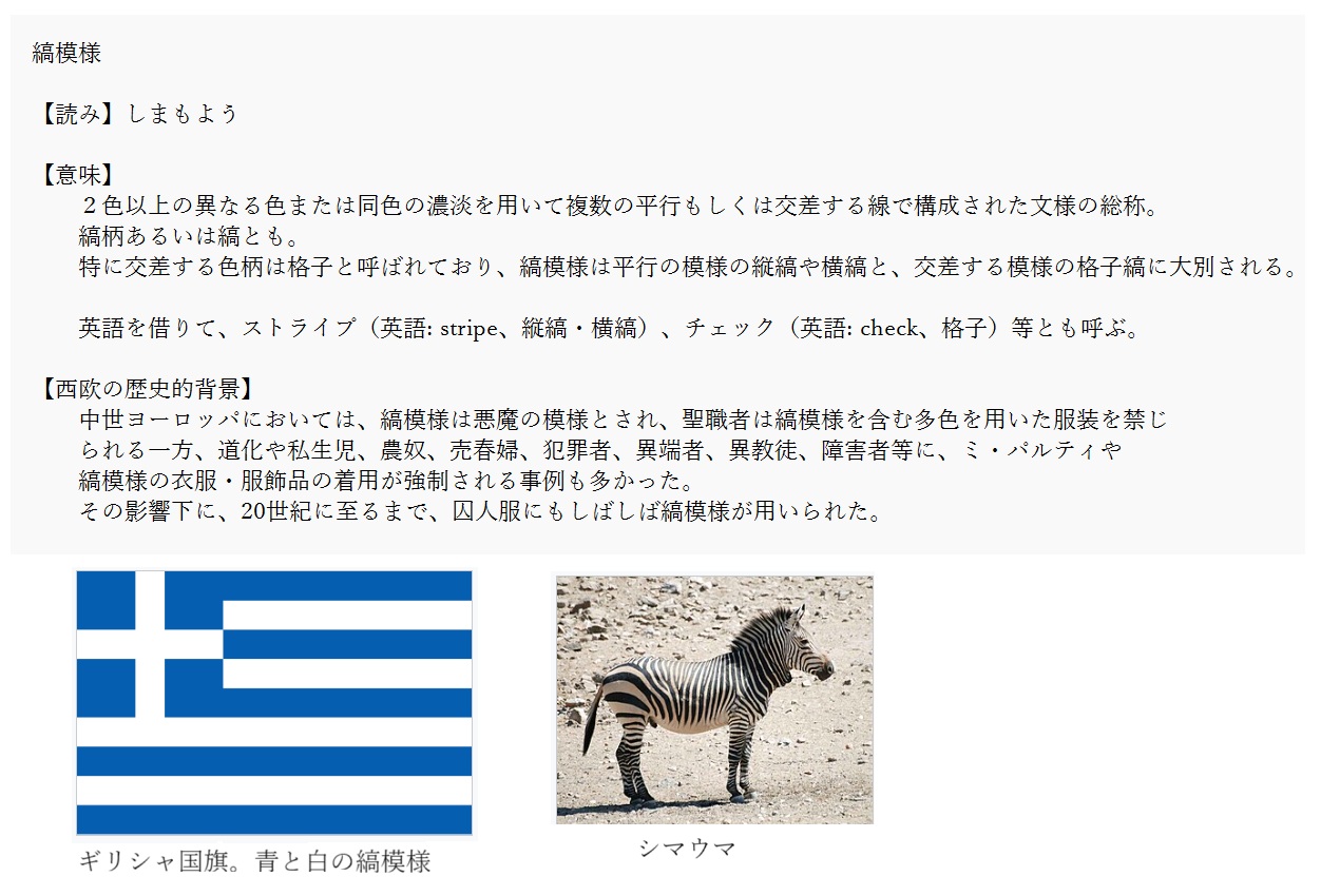 縞 | 二色以上の平行か交差した線模様 | 解説 |