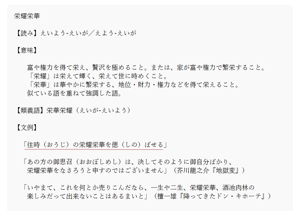 栄耀/栄燿 | 富や権力を得て栄え、贅沢を極める | 解説 |
