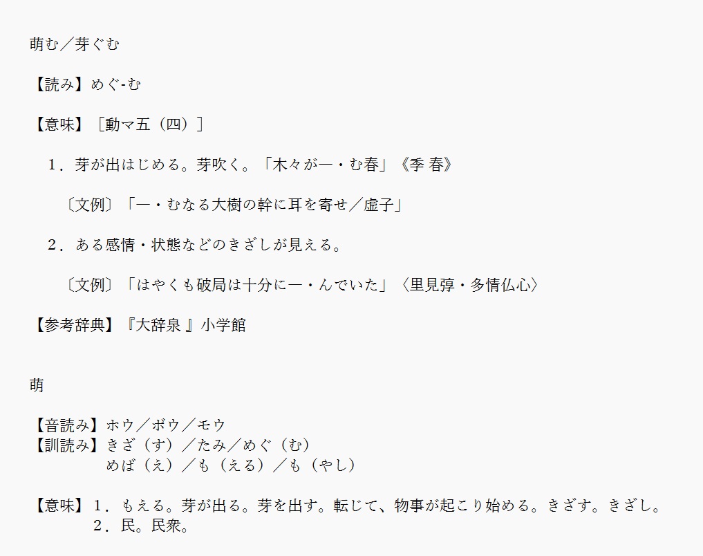 萌 | 芽が出はじめること | 解説 |