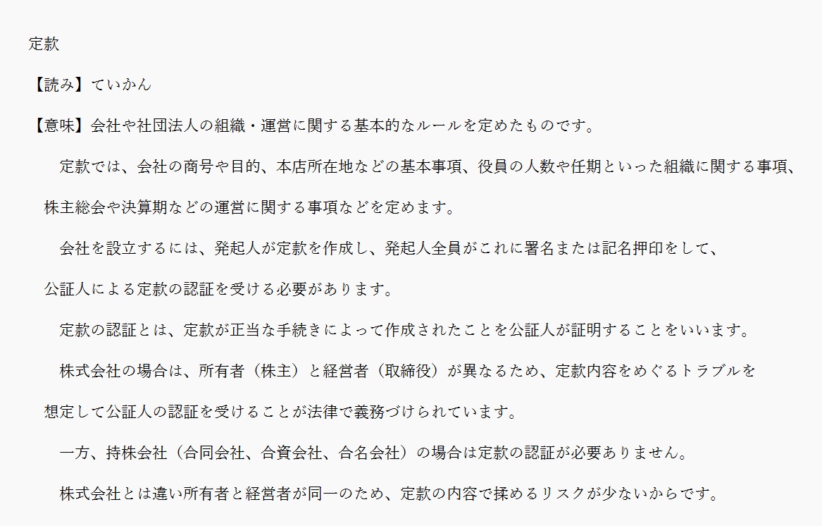 定款 | 会社の基本ルールを定めたもの | 解説 |