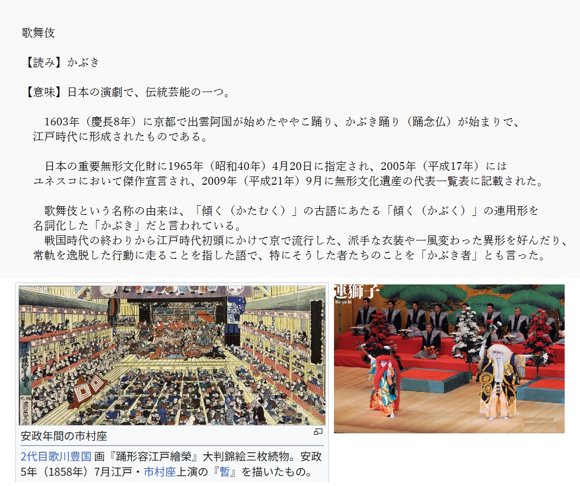 歌舞伎 | 日本演劇で伝統芸能の一つ | 解説 |