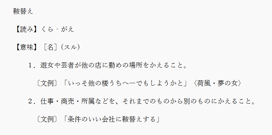 鞍替 | 勤め先や所属先をかえること | 解説 |