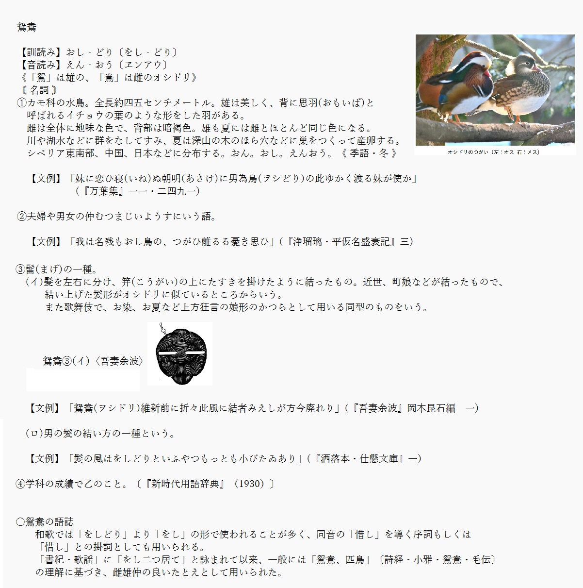 鴛鴦 | 仲睦まじい夫婦のこと | 解説 |