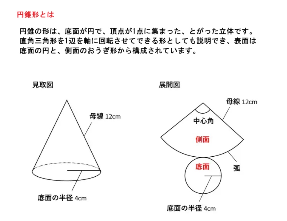 円錐 | 円を底面に錐状にとがった立体 | 解説 |
