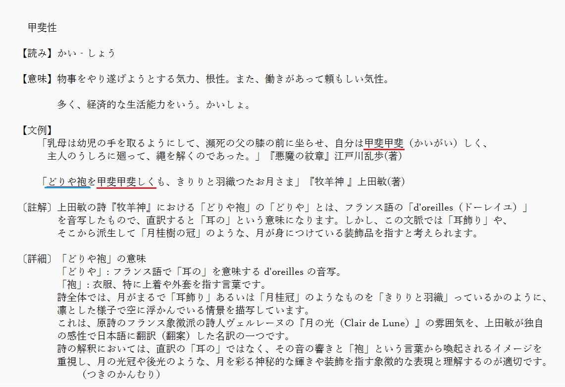 甲斐性 | 経済的な生活能力 | 解説 |