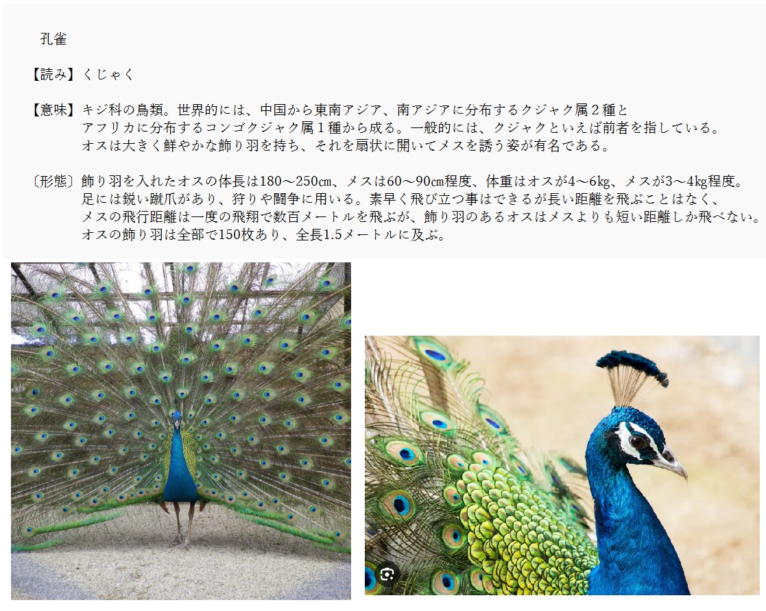 孔雀 | キジ科の鳥類、東南アジアに棲息 | 解説 |