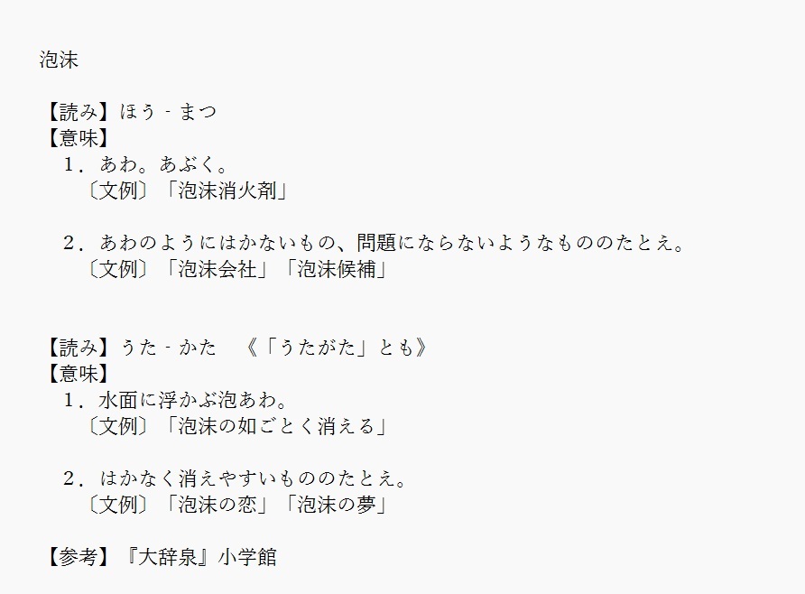 泡沫 | あわのようにはかないもの | 解説 |