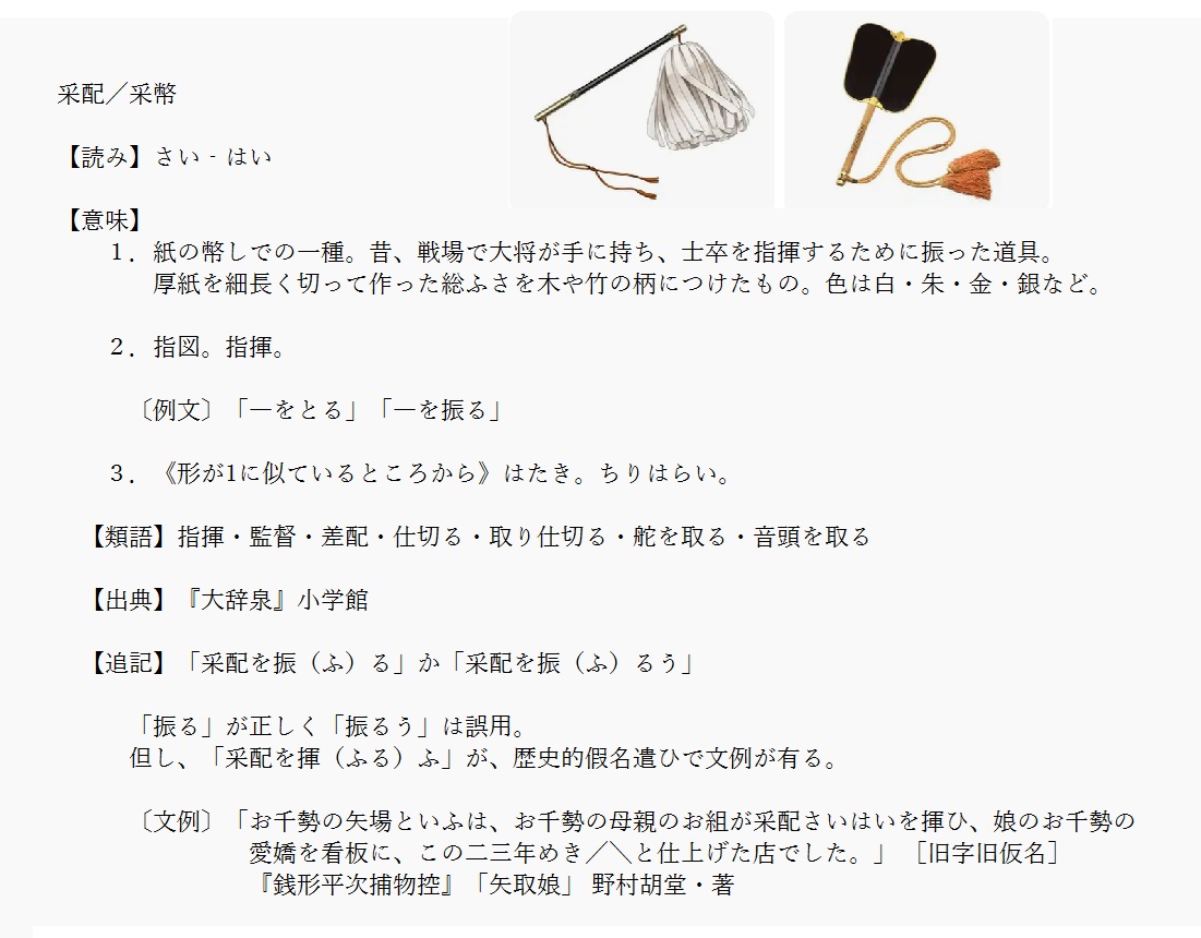 采配 | 指図。指揮 | 解説 |