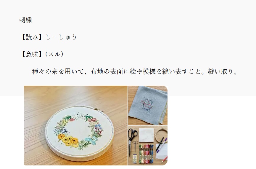 刺繍 | 布地の表面に模様を縫い表すこと | 解説 |