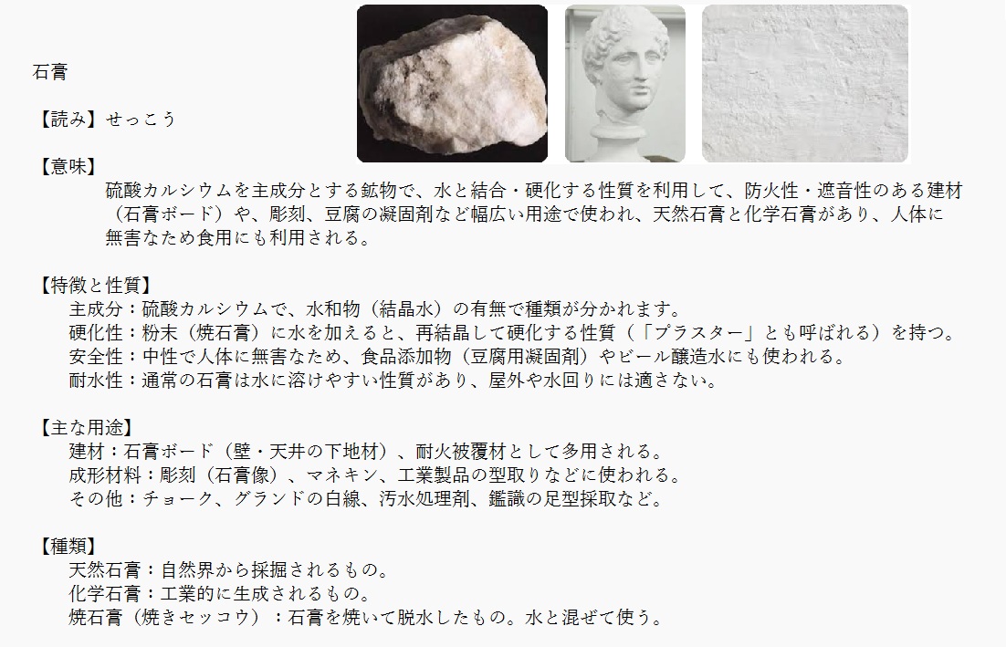 石膏 | 防火性・遮音性に優れた性質の材料 | 解説 |