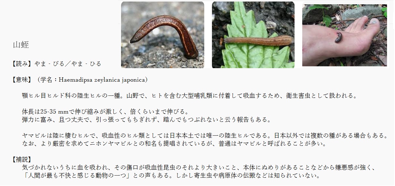 蛭 | 顎ヒル目ヒルド科の陸生ヒルの一種 | 解説 |