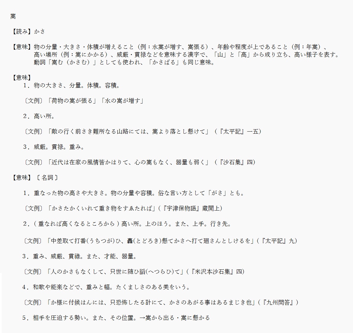 嵩 | ものの大きさや量。特に、体積。 | 解説 |