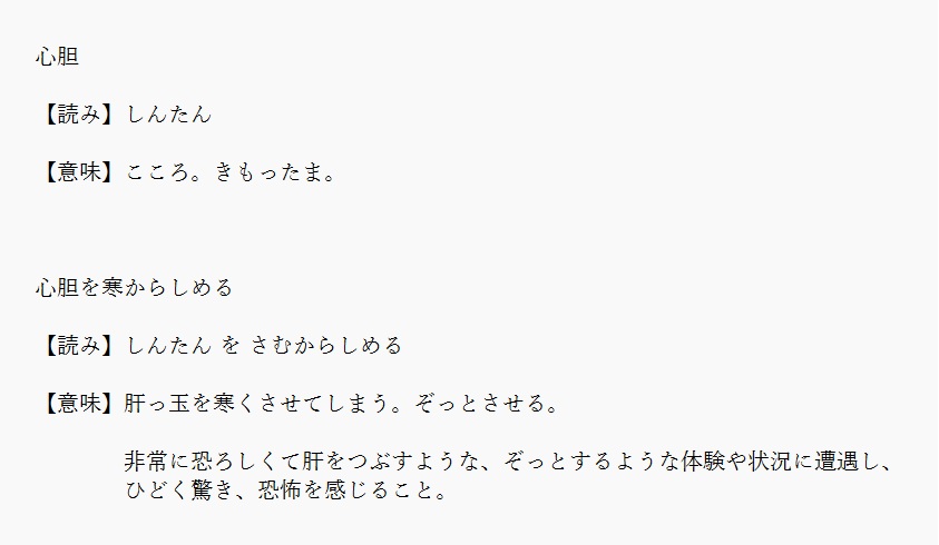 心胆 | 肝っ玉を寒くさせてしまう | 解説 |