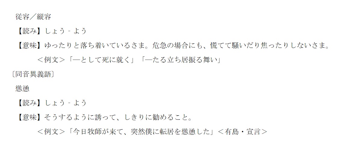 従容/縦容 | ゆったりと落ち着いているさま | 解説 |