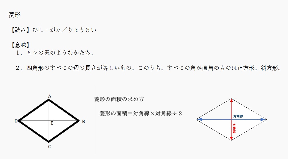 菱形 | 四辺の長さが等しい斜方形 | 解説 |