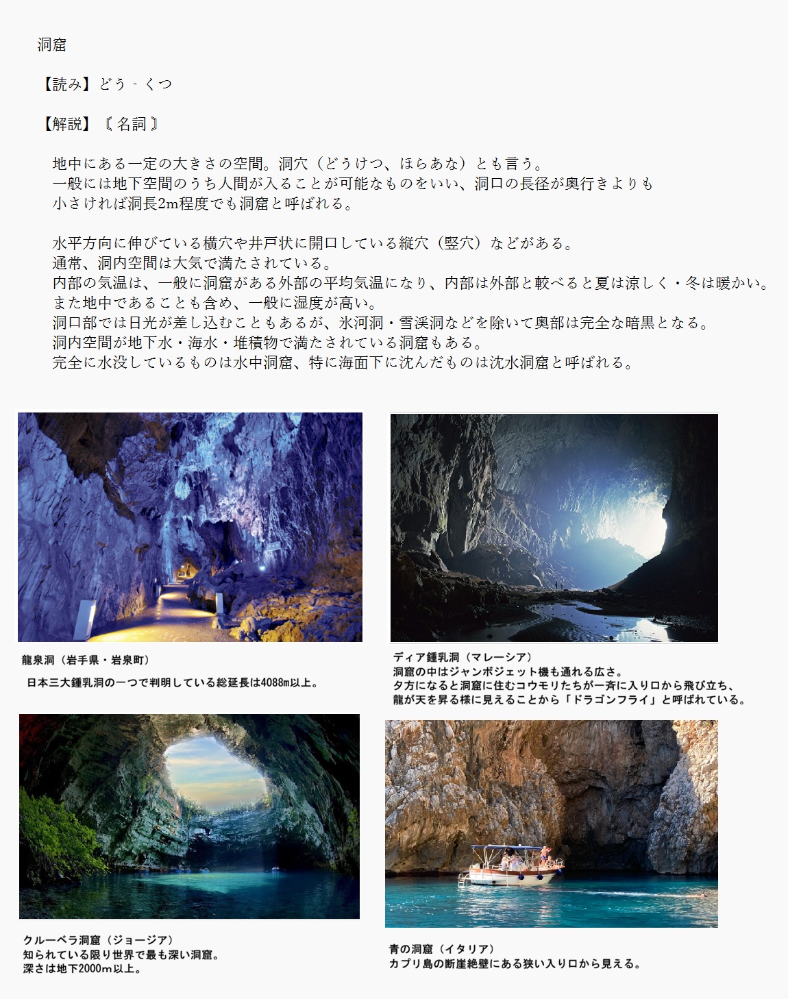 洞窟 | 地中にある一定の大きさの空間 | 解説 |
