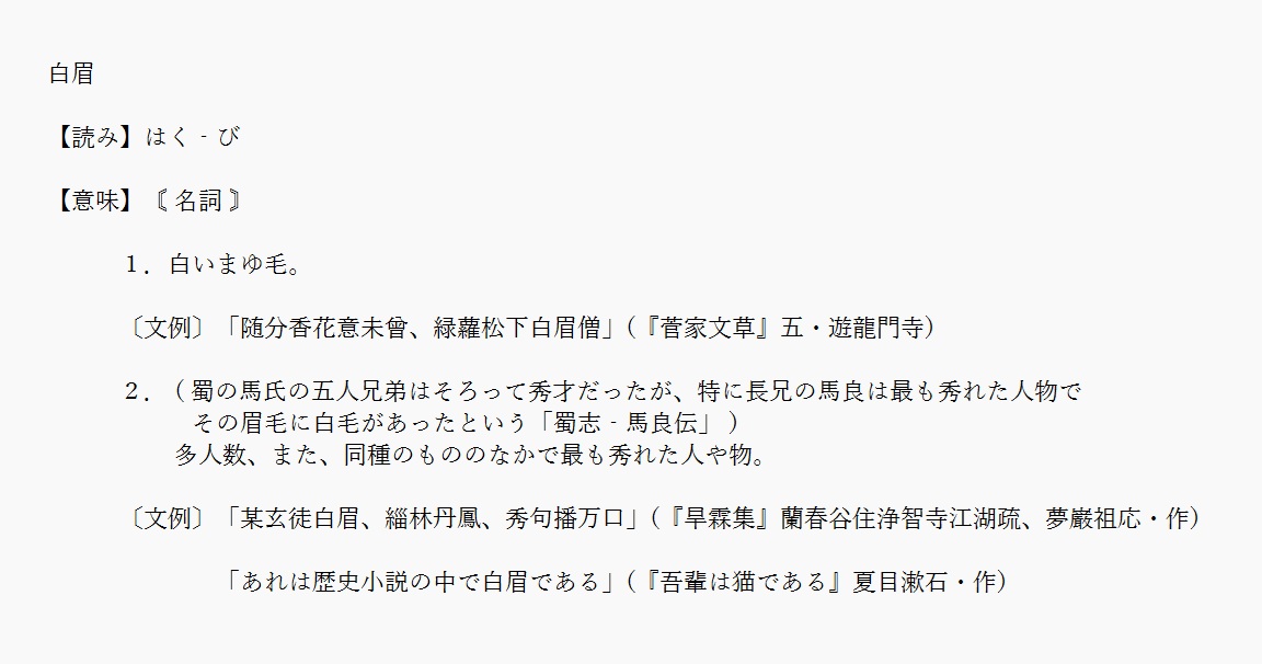 白眉 | 多くの中で最も優れているもの | 解説 |