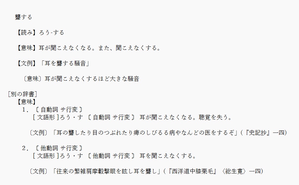 聾 | 耳が聞こえなくなる。聞こえなくする | 解説 |