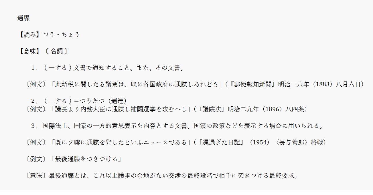 通牒 | 国家の一方的意思表示の要求 | 解説 |