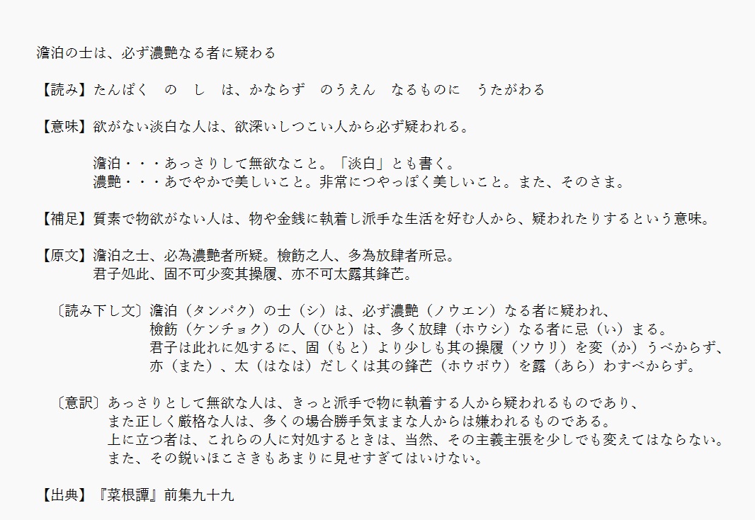 | 6 | 澹泊の士は必ずノウエンの者の疑うところとなる | |