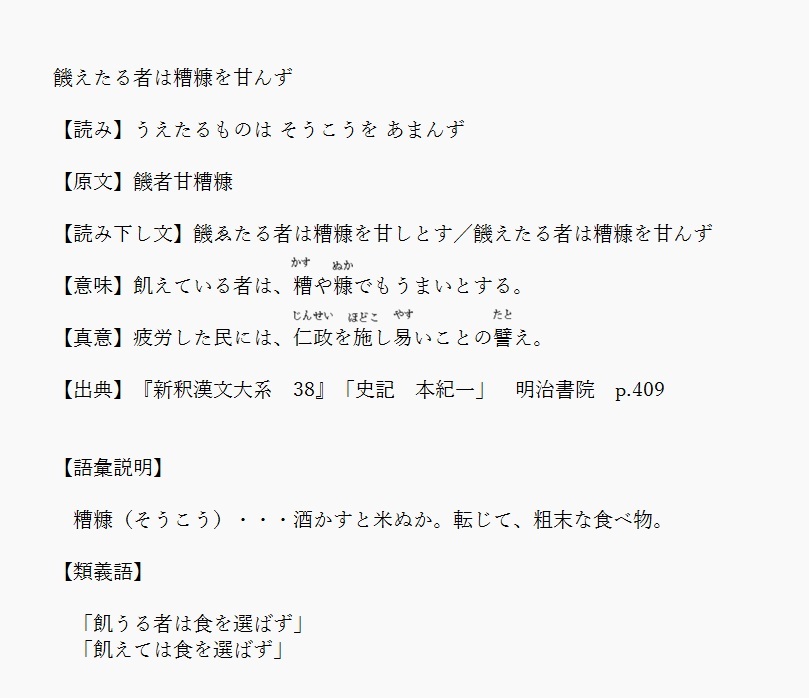糟糠 | 飢えればどんな食べ物でもよい | 解説 |