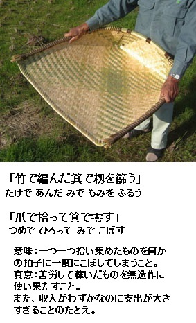 | 1 | 爪で拾って箕で零す | |