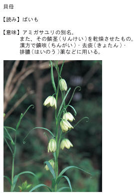 | 7 | 貝母の鱗茎を鎭咳剤に用いる | |