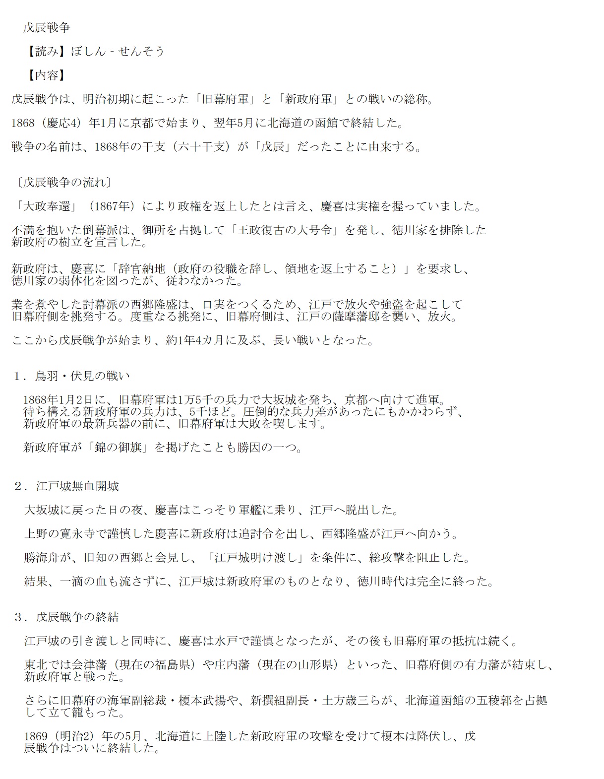 戊辰 | 明治初期の戦争。1868年~1869年 | 解説 |